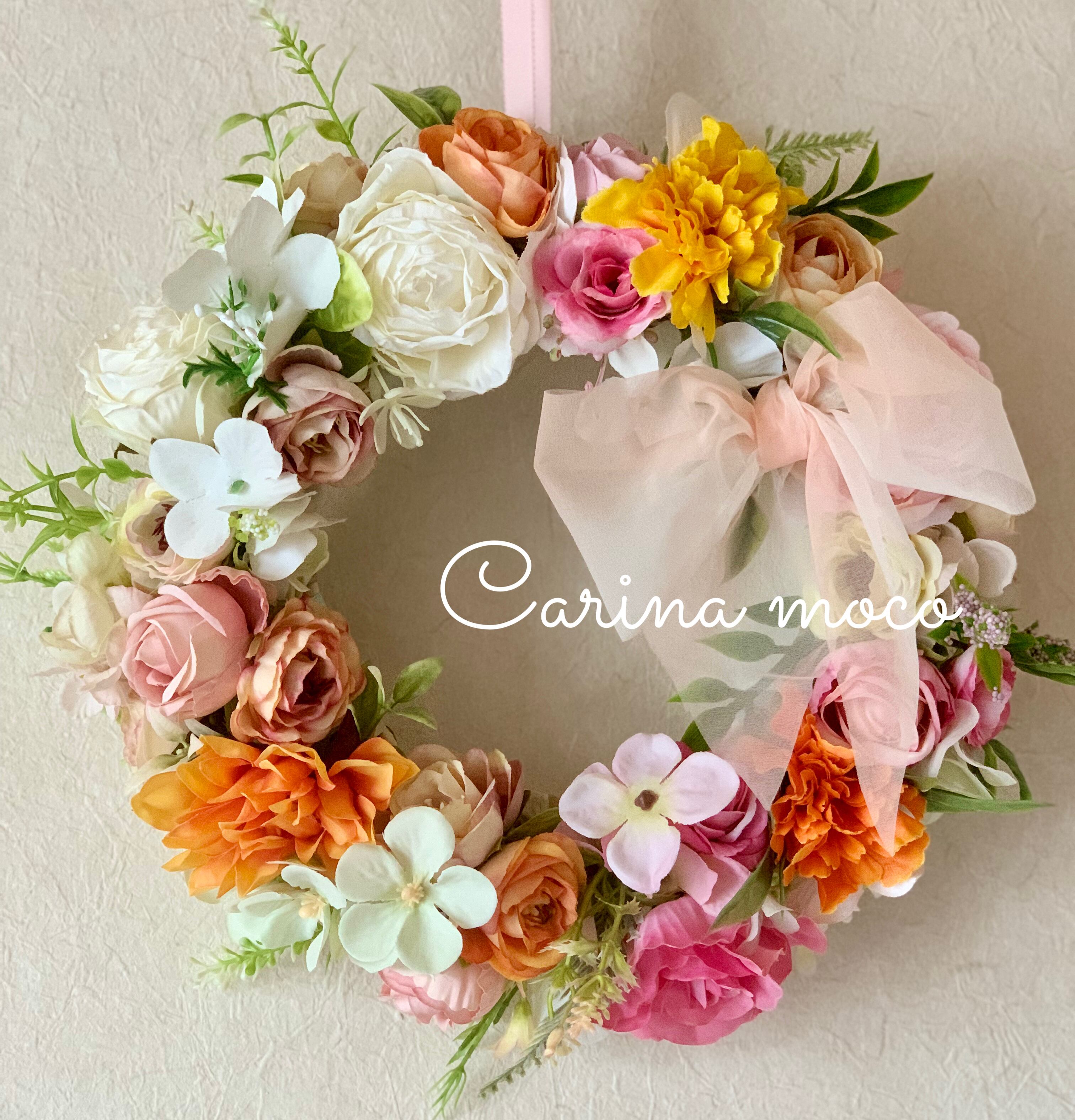 色とりどりの花を束ねた贅沢なリースは、まるで森の中に住むフェアリーが手作りしたかのよう。ドアにつるしても、壁に飾っても、中にキャンドルを入れて、キャンドルリースや、テーブルリースしていただいても丁度よい大きさです。可愛くて周りを元気づけ、明るい雰囲気にしてくれます。