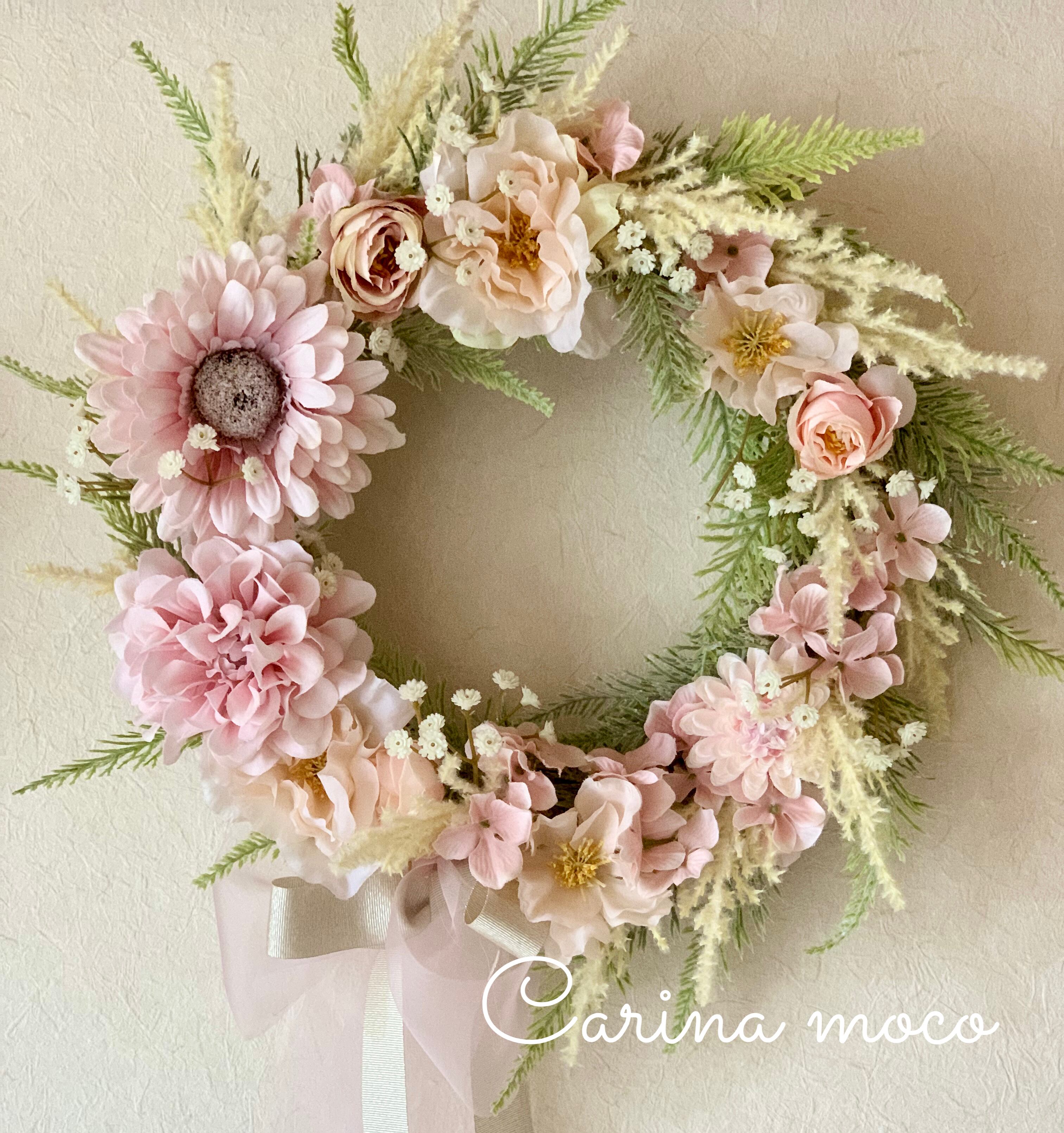 ペールピンクのシャビーなリースが、あなたのお部屋をふんわりと優しい気持ちへ誘ってくれますように♡