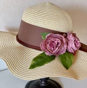 ご予約済・優雅な茶色い幅広リボンの帽子