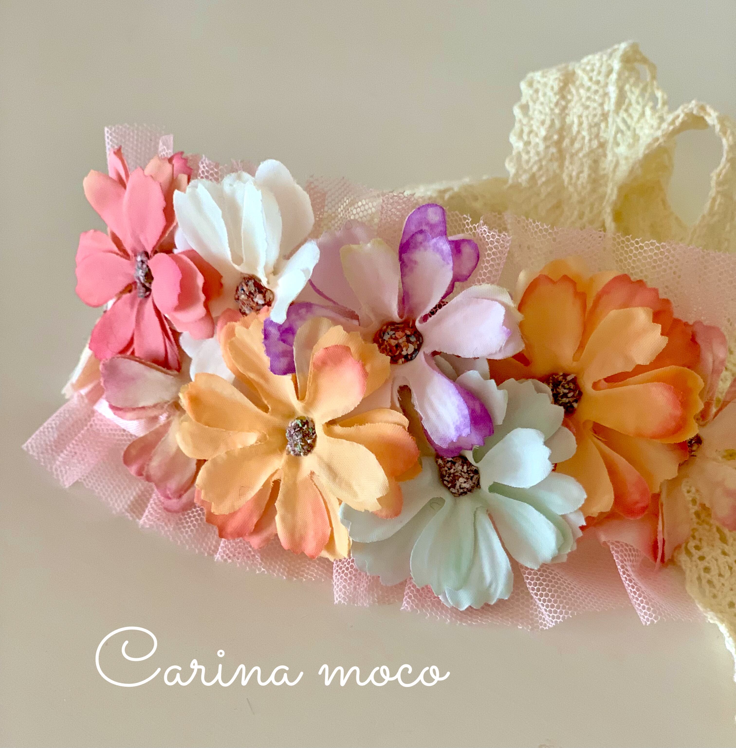 犬さんや猫さんの頭につけたり、首に巻いたりしてかわいいヘッドバンドです。