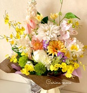 今回は見る元気の薬…黄色をたくさん入れてみました。チューリップや水仙など、敢えて春爛漫な花々を加えることで、眺める方がほっこり優しい気持ちになれるように作成させていただきました。