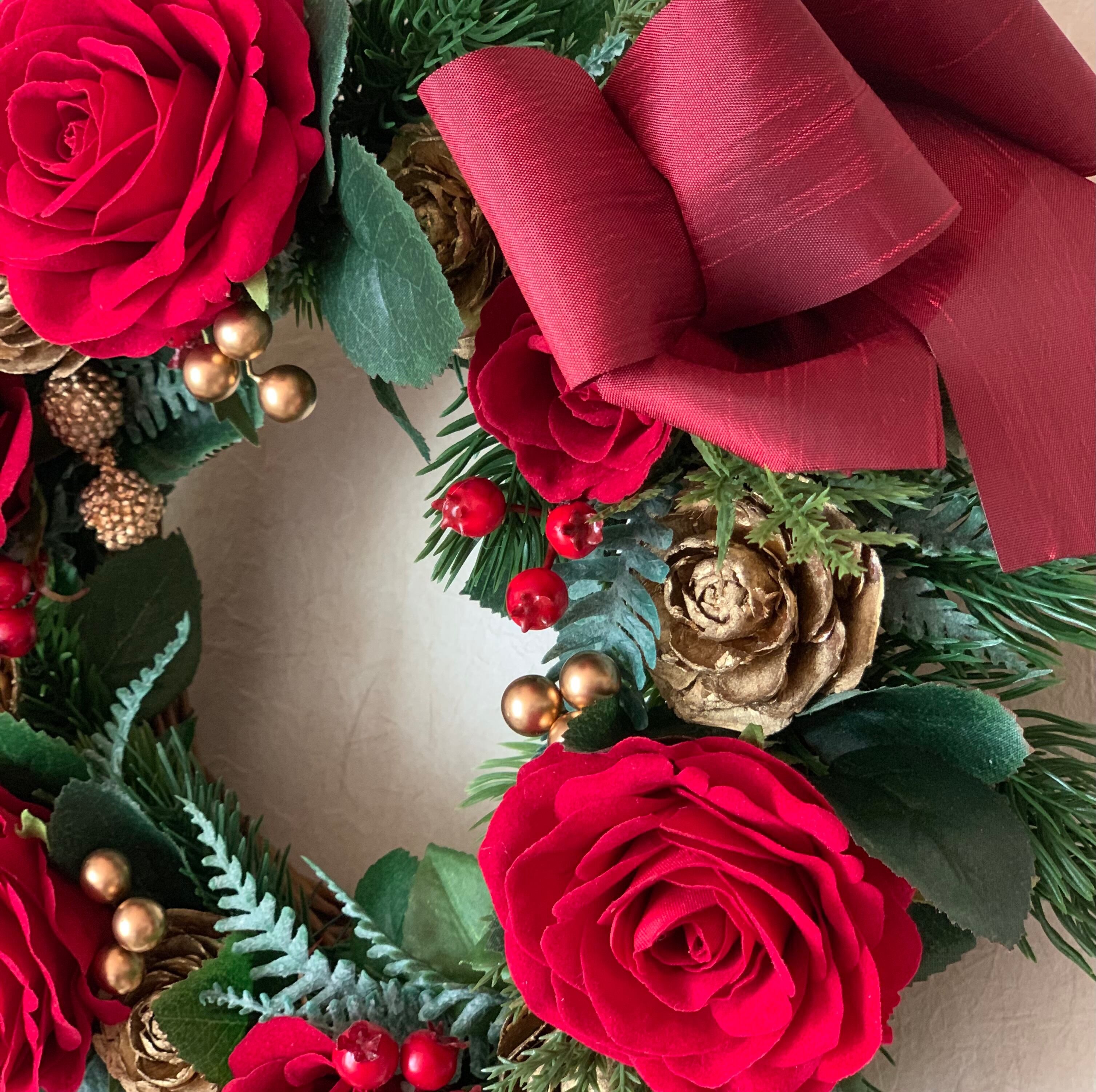 ご予約済み•ブーケを模した深紅のバラのリース