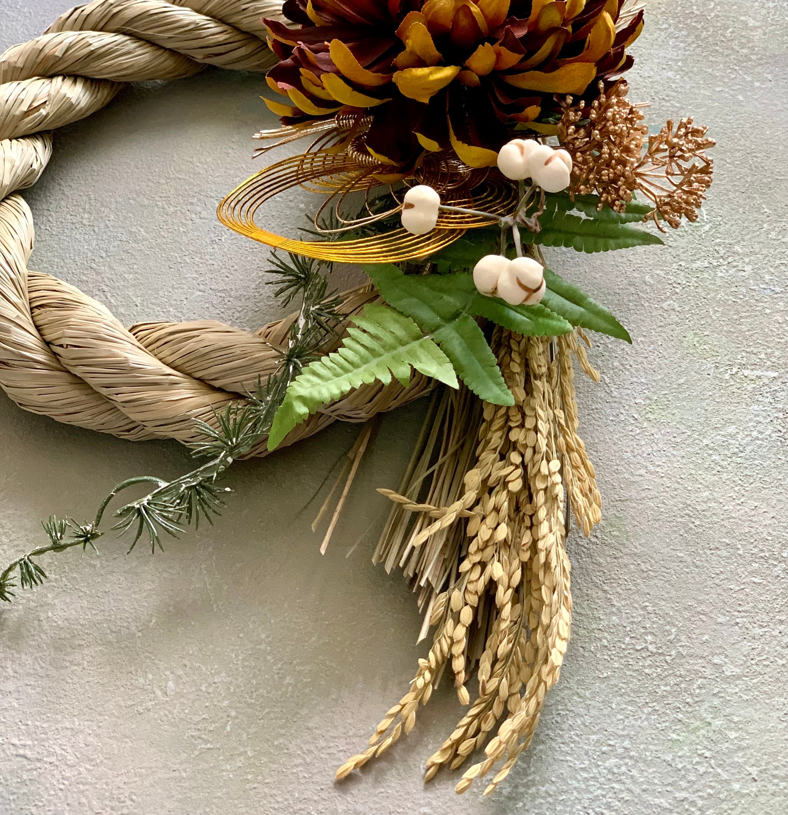 しめ縄以外は、アーティフィシャルフラワーで構成しております。