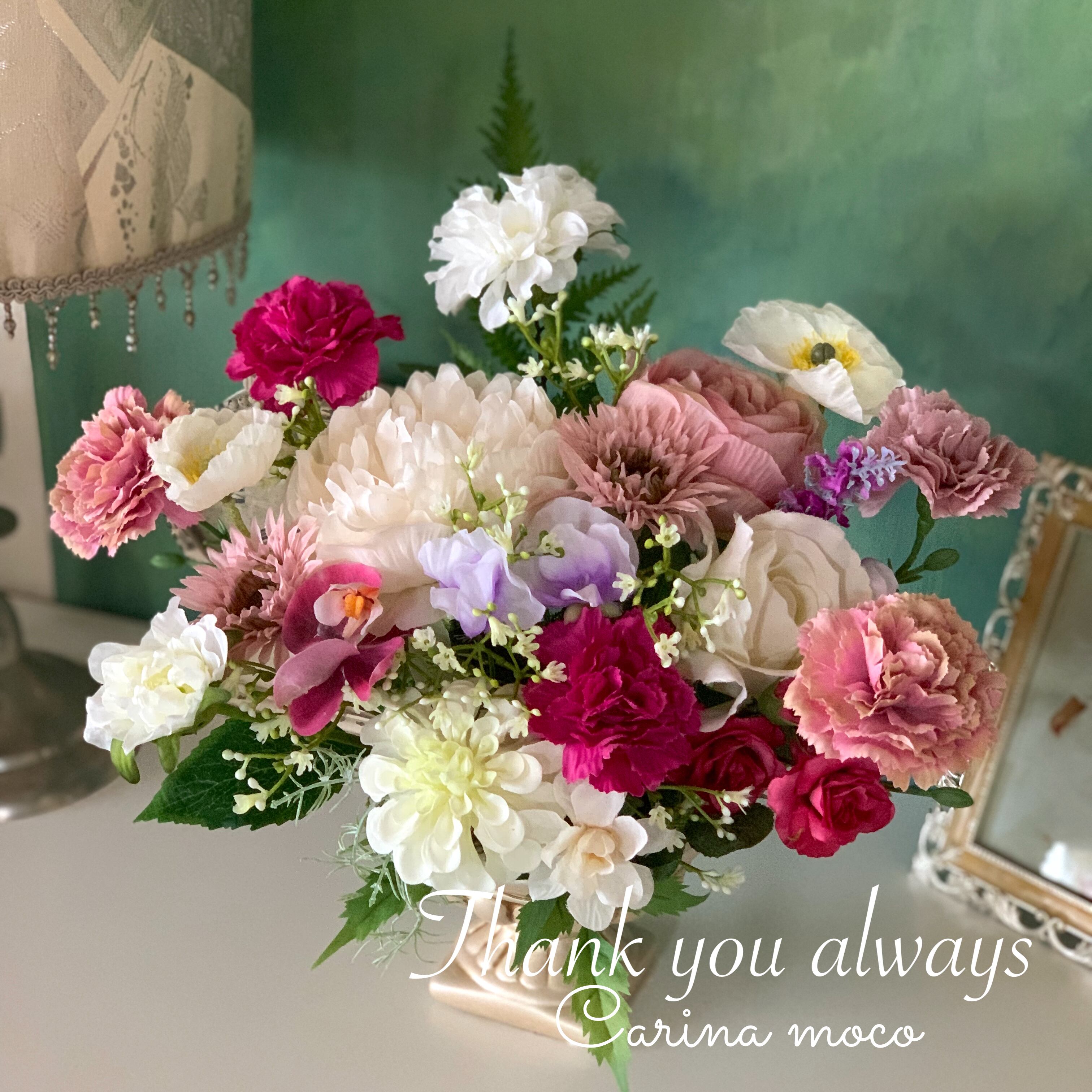 目に見えるところに置いていただくと、ピンク系のお花は癒し、優しい気持ち、愛情などを呼び寄せるそうです。