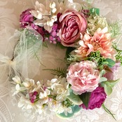 例え土星があろうと、天冥、火星揃おうとひとりムフフと秘密の世界にヒタヒタと浸るのが幸せのはず。思い切って、そんな自分を許してもらえたら、世界がもっと広がっていくのかなぁと思いまして、コンバインしたやや三日月風なリースを作らせていただきました。リボンもチュールで。